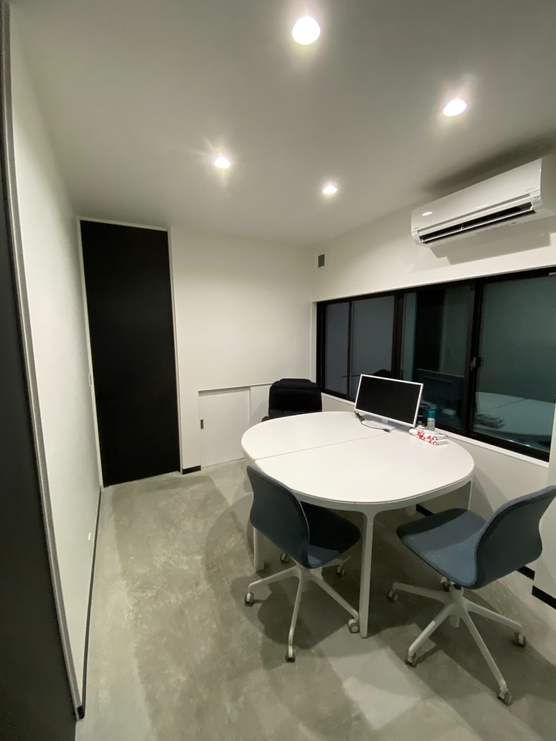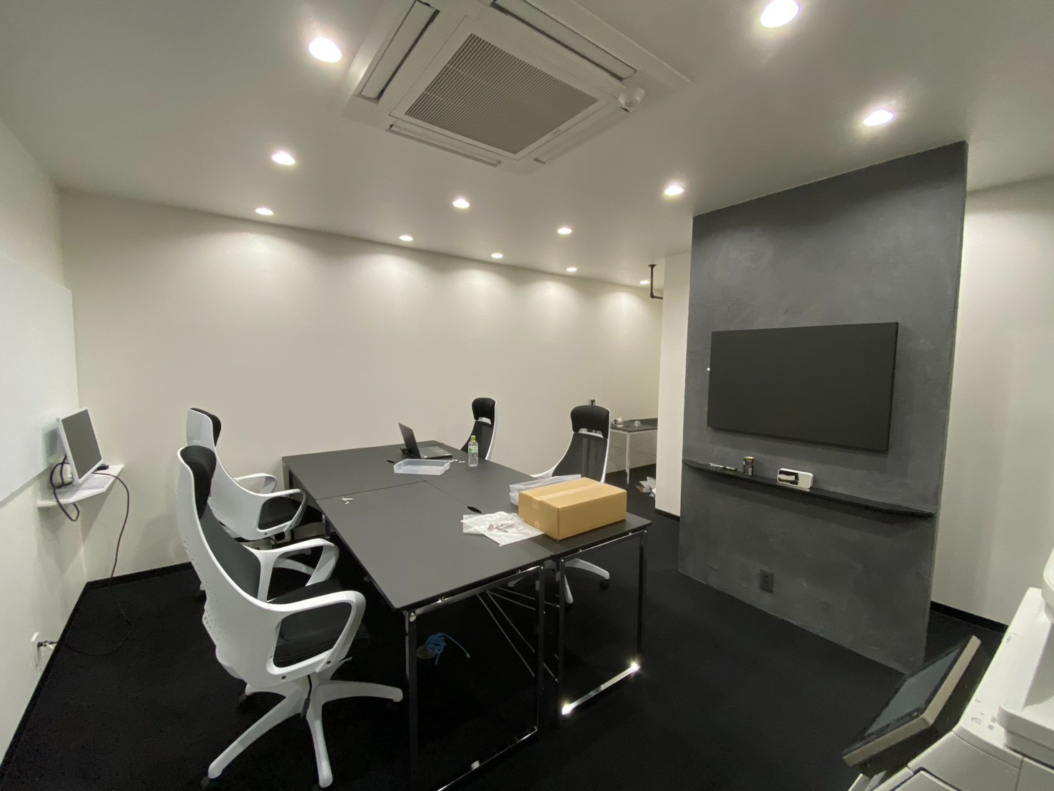 会議室は白を基調としたミニマルなデザインに整え、ブラックの造作壁やモノトーンのチェアを組み合わせることで洗練された空間に仕上げました。